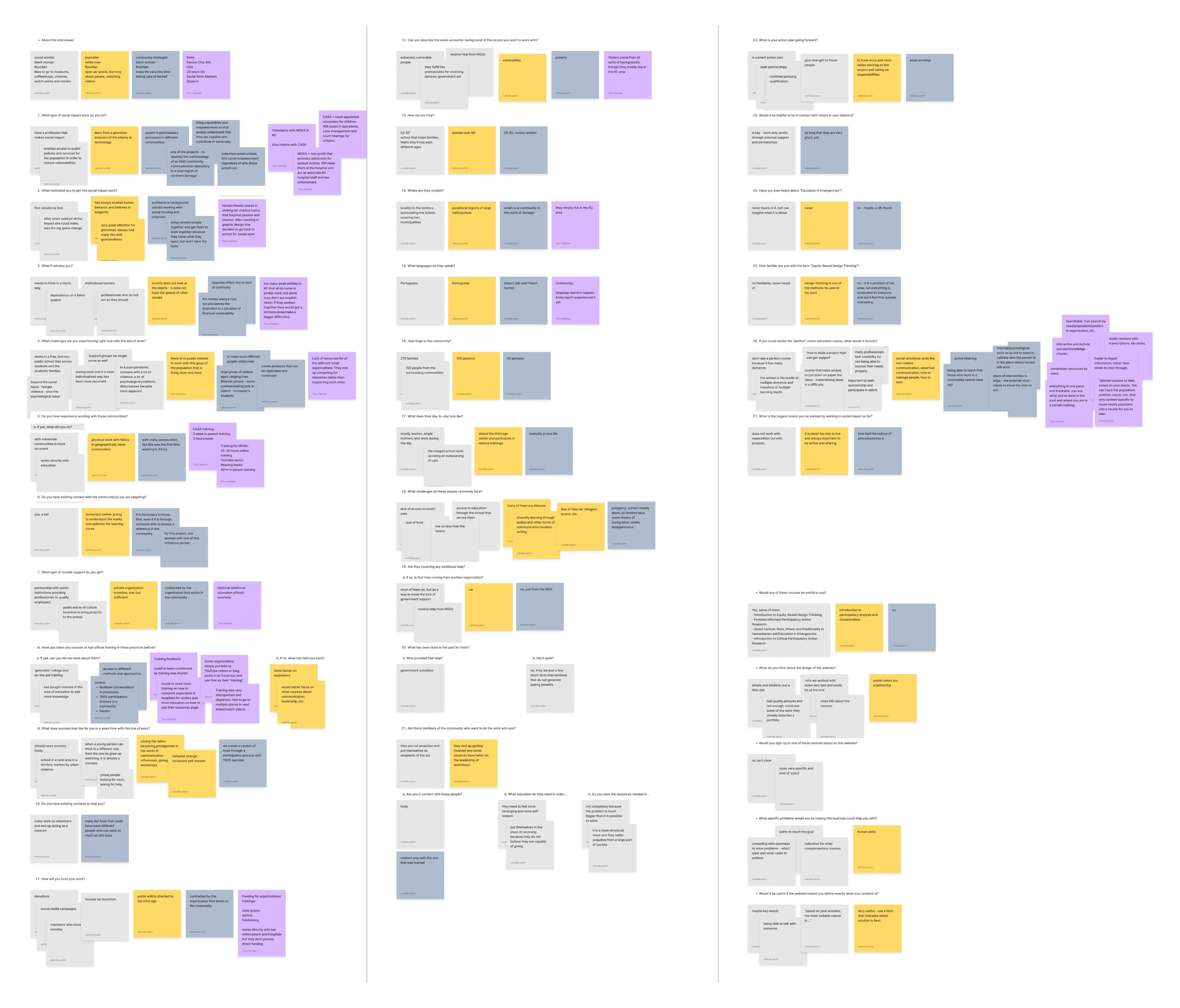 Consolidei informações da entrevista com a fundadora, resultados das conversas com usuários e referências do mercado e definição de persona para entender expectativas e comportamento na busca por cursos.