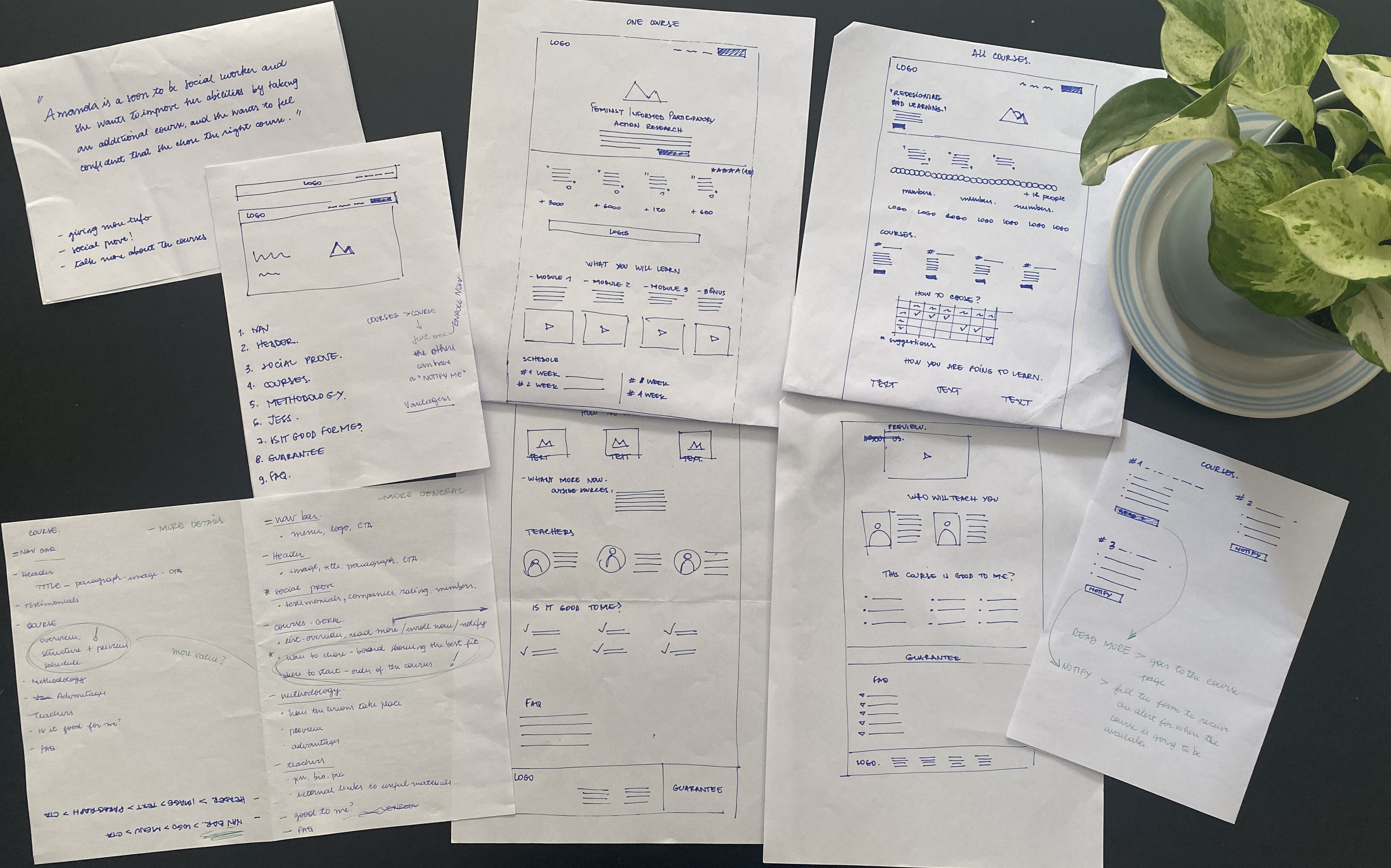 Criei wireframes em papel e no Figma para validar hierarquia e fluxo antes de partir para o visual final.